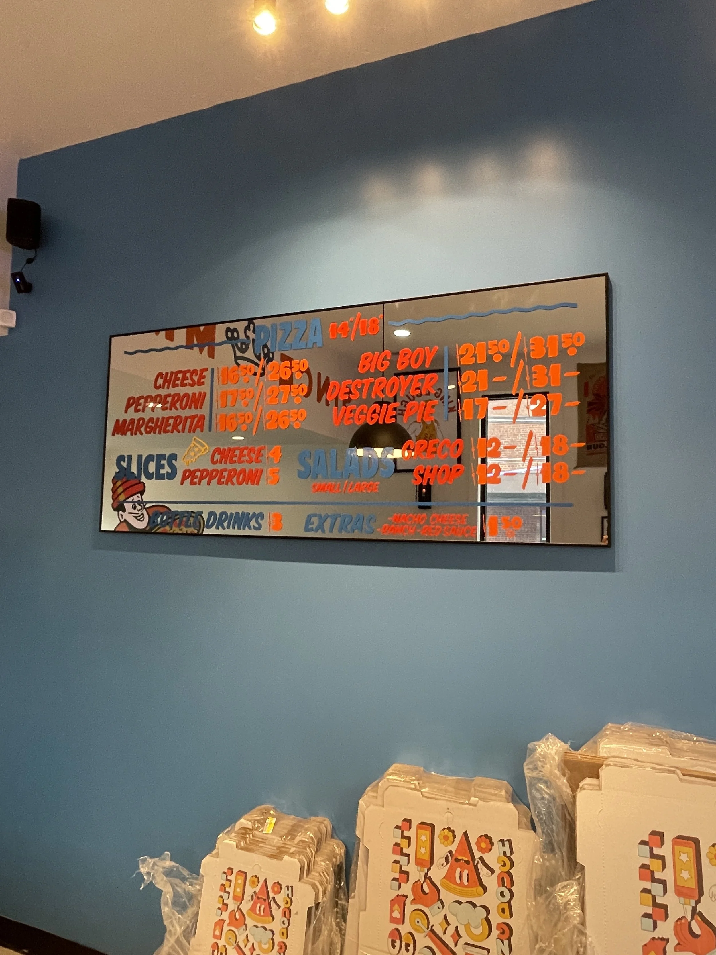 King Dough's third location in Lapel, IN utilized pre-existing branding to accentuate their new pizza shop. We painted a mural wall, menu board, and accent walls with KD branding.